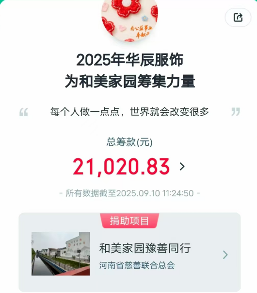 以善為炬,點(diǎn)亮和美家園:華辰服裝用責(zé)任擔(dān)當(dāng)書寫企業(yè)溫度